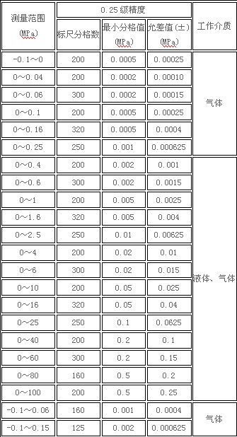 0.25級精密壓力表的刻線分格